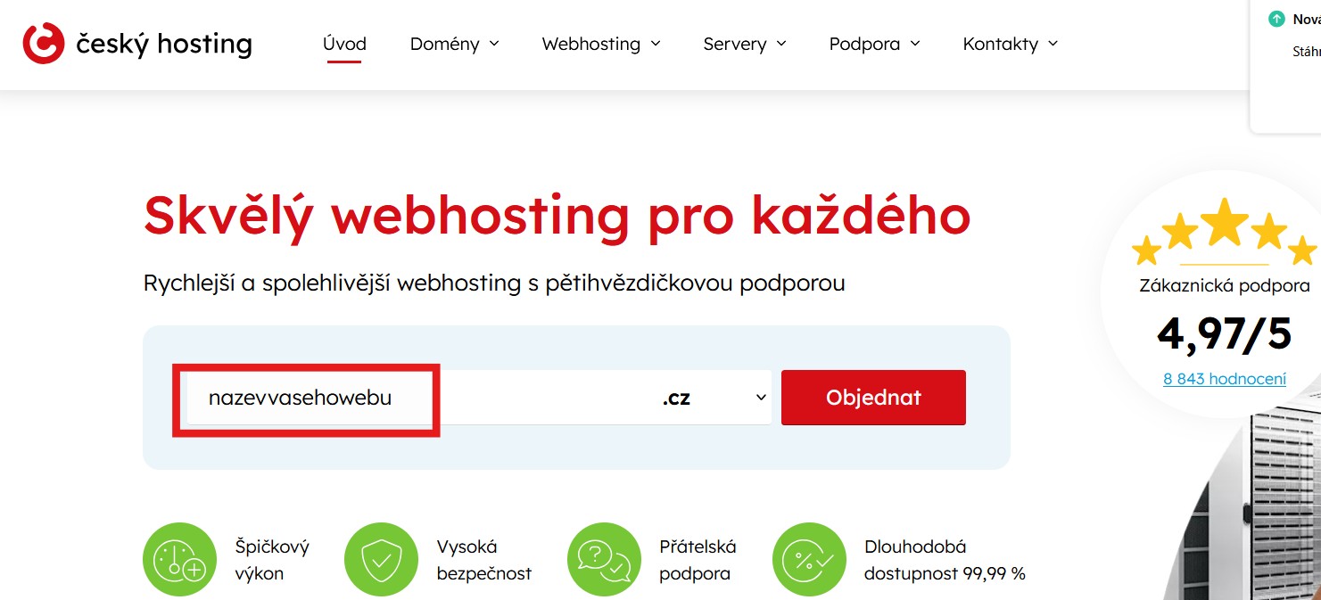 Jak koupit doménu a hosting u Český hosting, vyplnění údajů, doporučený hosting pro WordPress
